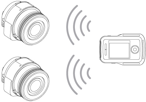 (Enkel tilkobling) for å betjene kameraet med en smarttelefon. - Maksimalt fem kameraer kan kobles til når