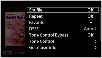 Hvis du skyver inn det trinnvise hjulet mens du spiller av et spor, vises skjermen for avspillingsalternativer.