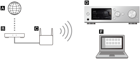 Folosirea unei reţele LAN cu fir este recomandată în special atunci când transferaţi volume mari de date cum ar fi primul transfer de fişiere audio de pe computer pe HDD AUDIO PLAYER. - Funcţia Wi-Fi (LAN wireless) a HDD AUDIO PLAYER este dezactivată atunci când selectaţi setarea LAN cu fir.