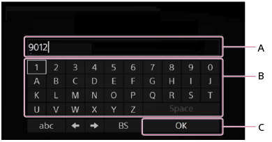 for å flytte markøren til venstre og høyre i området der du skriver inn tegn. - Hvis du vil slette et tegn, flytter du markøren til høyre for tegnet du vil slette, og deretter bruker du [BS] på tastaturet.