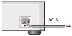 - Koble den medfølgende strømledningen ordentlig til AC IN-kontakten på baksiden av HDD AUDIO PLAYER, og deretter kobler du støpselet til et vegguttak.