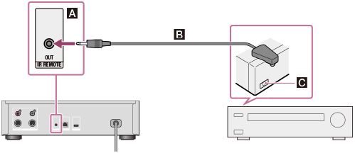 Når du bruker en Sony-forsterker som er utstyrt med en IR-inngangskontakt.