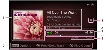 - Hvis en musikkfil mangler filinformasjon, går HDD AUDIO PLAYER automatisk til Gracenote-databasen og skaffer og viser så mye musikkfilinformasjon som mulig.