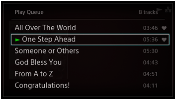Play Queue (Avspillingskø) er en liste over alle sporene som er merket for avpilling, for eksempel alle sporene av en bestemt artist eller på et bestemt album.
