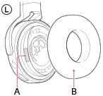 - Anbring din finger på indhakket, og tryk derefter og flyt din finger rundt i kanten af ørepuden en gang for at montere kanten i rillen på hoveddelen.