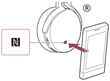 - Kosketa älypuhelimella kuulokkeiden N-merkillä merkittyä kohtaa. Kosketa kuulokkeita älypuhelimella, kunnes älypuhelin reagoi.
