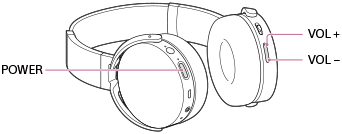 - Kytke kuulokkeisiin virta painamalla POWER-painiketta yli 2 sekunnin ajan pitämällä samalla VOL+- tai VOL–-painiketta painettuna.