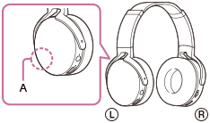 - Poista mahdolliset esteet yhdistettävän BLUETOOTH-laitteen antennin ja kuulokkeiden sisäänrakennetun antennin väliltä. Kuulokkeiden antenni sijaitsee alla olevassa kuvassa pisteviivalla merkityssä kohdassa.