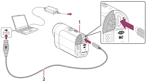 *2Hurtiglading er mulig ved hjelp av USB-laderen AC-UD10 (tilleggsutstyr). Hvis du vil koble til laderen, bruker du micro-USB-kabelen (følger med).