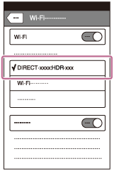 - Velg [Innstillinger] på iPhone-enheten, og velg deretter [Wi-Fi] og kameraets nettverksnavn (SSID).