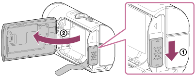 - Öppna batteriluckan och dra ut batteriutmatningsfilmen för att ta ut batteriet.