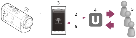 Du kan visa strömmad film på kameran från webbplatser för videodelning, till exempel USTREAM, via en Wi-Fi-router eller smartphone.