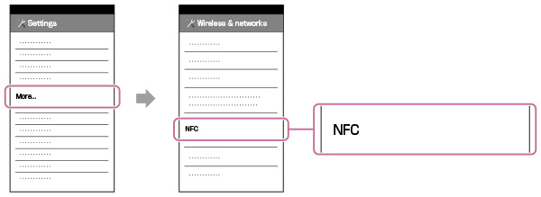 Valitse älypuhelimessa [Settings], valitse sitten [More…] ja aseta valintamerkki kohtaan [NFC].