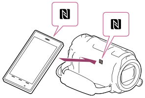 - Задръжте продукта и смартфона заедно и неподвижно за около 1-2 секунди, докато „PlayMemories Mobile“ се стартира на смартфона ви.