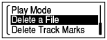 - Vyberte položku OPTION – „Delete a File“ a potom stlačte tlačidlo