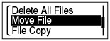 - V režime zastavenia prehrávania vyberte položku OPTION – „Move File“ a potom stlačte tlačidlo