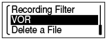 Ob nakupu IC-snemalnika je funkcija »VOR« nastavljena na »OFF«. - Pritisnite gumb