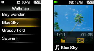З’являється екран відтворення музичного вмісту; розпочинається відтворення.