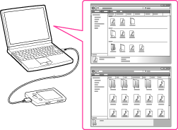 Клацніть [Пуск] – [Мій комп’ютер] або [Комп’ютер] – [WALKMAN] – [Storage Media] та оберіть папку [MUSIC].