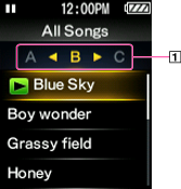 Відображення початкових літер назв композиції й альбому тощо в розділі списку.