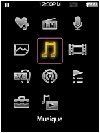 Le menu Accueil est le point de départ de toutes les applications comme celles de recherche de pistes et de changement des réglages.