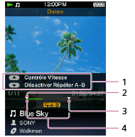 Lorsque vous utilisez le mode danse, vous pouvez répéter plusieurs fois une section spécifique (d'un point A à un point B) d'un fichier audio (Répéter A-B).