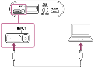 - Tilslut Mac-computeren til WALKMAN/Xperia/computertilslutningsporten (INPUT) ved brug af mikro-USB-kablet (medfølger).