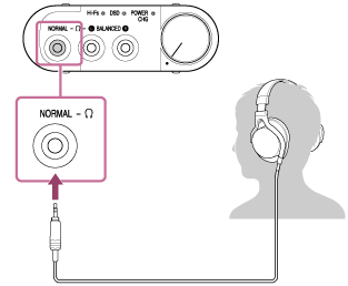 (hovedtelefoner) NORMAL-stikket på hovedtelefonforstærkeren.