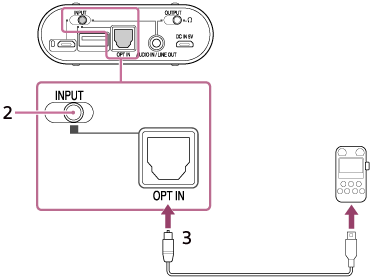 Du kan koble forsterkeren for hodetelefoner til en enhet med optisk utgang, for eksempel en PCM-opptaker, ved hjelp av en digital optisk kabel (selges separat).