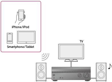 Du kan modtage lyd fra en iPhone/iPod, smartphone eller tablet, der har en BLUETOOTH-funktion, og lytte til den via denne receiver.