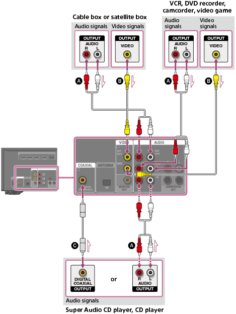 Csatlakoztassa az eszközöket a rádióerősítőhöz az alábbi ábra szerint.