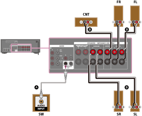 După ce aţi stabilit conexiunile, setaţi [Speaker Setting] - [Surround Back Speakers Assign] la [None Speaker] din meniul de pornire.