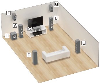 Μπορείτε να απολαύσετε εφέ ήχου στον κάθετο άξονα, συνδέοντας δύο πρόσθετα μπροστινά επάνω ηχεία.