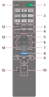 Ο δέκτης ενεργοποιείται όταν πιέζετε οποιοδήποτε από τα πλήκτρα εισόδου. Τα κουμπιά εισόδου είναι προκαθορισμένα για να ελέγχουν αυτόματα συσκευές Sony, όταν τα επιλέγετε. - REPEAT