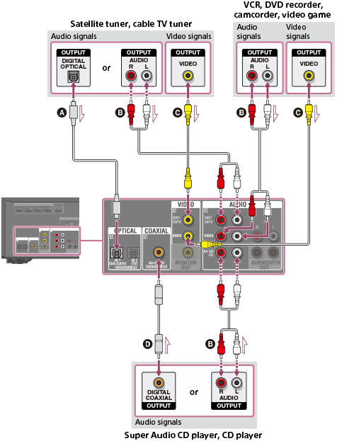 Συνδέστε συσκευές στο δέκτη όπως φαίνεται παρακάτω.