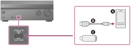 Konektor HDMI/MHL (VIDEO 2 IN) podporuje technológiu MHL 2.