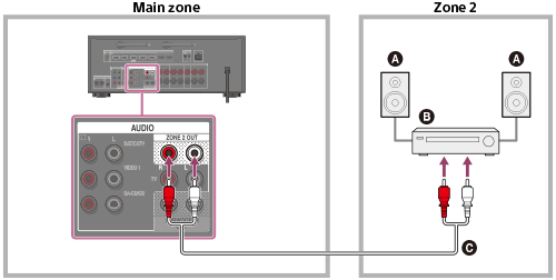 Pripojenie ďalšieho zosilňovača v zóne 2 (iba model STR-DN1060)