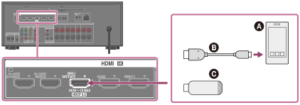 HDMI/MHL (VIDEO 2 IN)-uttaget har stöd för MHL 2-teknik.