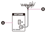 - Използвайте коаксиален кабел от 75 ома (не е включен в комплекта), за да свържете приемника към външна FM антена (ефирна), както е показано по-долу.