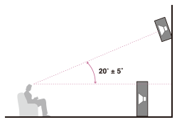 - Predné horné reproduktory umiestnite do výšky v uhle 20° ± 5°.