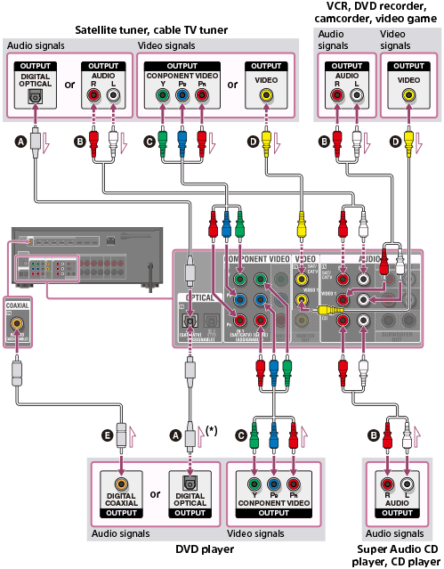 * Ak zariadenia pripojíte pomocou konektora OPTICAL opätovne priraďte vstupné konektory. Podrobné informácie nájdete v časti Používanie iných konektorov obrazového alebo zvukového vstupu (priradenie vstupu).
