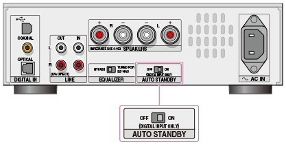 Ak prepínač AUTO STANDBY na zadnom paneli ZOSILŇOVAČA USB DAC prepnete do polohy ON a ZOSILŇOVAČ USB DAC nebudete používať alebo nebude prijímať žiadny digitálny signál počas 20 minút, jednotka sa automaticky vypne a prejde do pohotovostného režimu, v ktorom je nižšia spotreba energie.