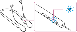 Kontroller, at indikatoren blinker skiftevis blåt og rødt, når du slipper knappen. Du hører stemmeguiden "BLUETOOTH pairing" (BLUETOOTH tilknyttet).