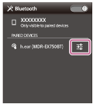 Dodirnite [Settings] - [Bluetooth] - ikonu za postavke uz stavku [h.ear (MDR-EX750BT)].