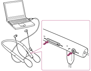 Jei ausinių įjungti nepavyksta arba jos net įjungtos neveikia, prijunkite ausines prie paleisto kompiuterio naudodami pridėtą kabelį su mažąja USB jungtimi, tada vienu metu paspauskite mygtukus