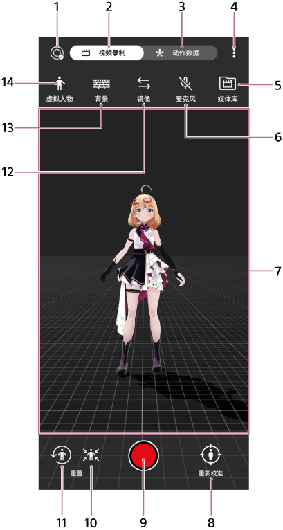 更改屏幕背景。您也可以使用智能手机相机的实时预览图像作为AR背景。 - 虚拟人物