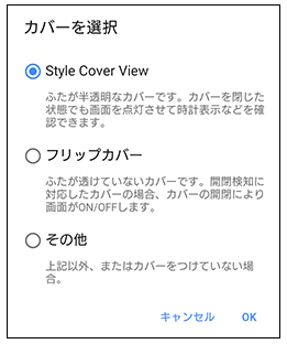 - 本製品を使用しなくなった場合は操作手順3で「その他」を選択→「OK」をタップし、設定を解除してください。「その他」を選択すると、アプリ一覧に「スタイルカバー」アプリが表示されなくなります。