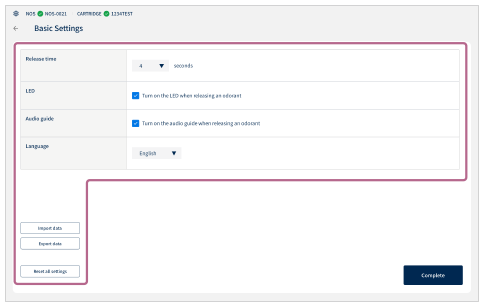 - Freisetzungszeit: Stellen Sie die Dauer der Freisetzungszeit des Geruchsstoffs ein (1 bis 10 Sekunden).
