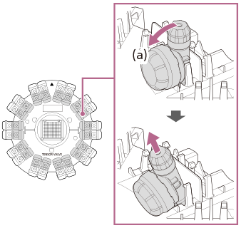 Tilt the sub-cartridge in direction (a) and pull it out.