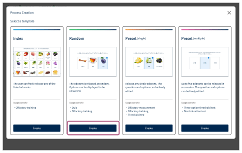 - Toque [Crear] en la sección [Aleatorio] de la pantalla [Creación de proceso].